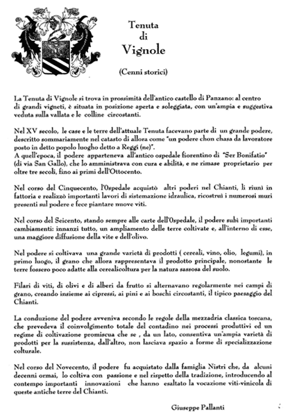 del Territorio di Panzano. L'azienda dispone di moderne cantine ricavate in